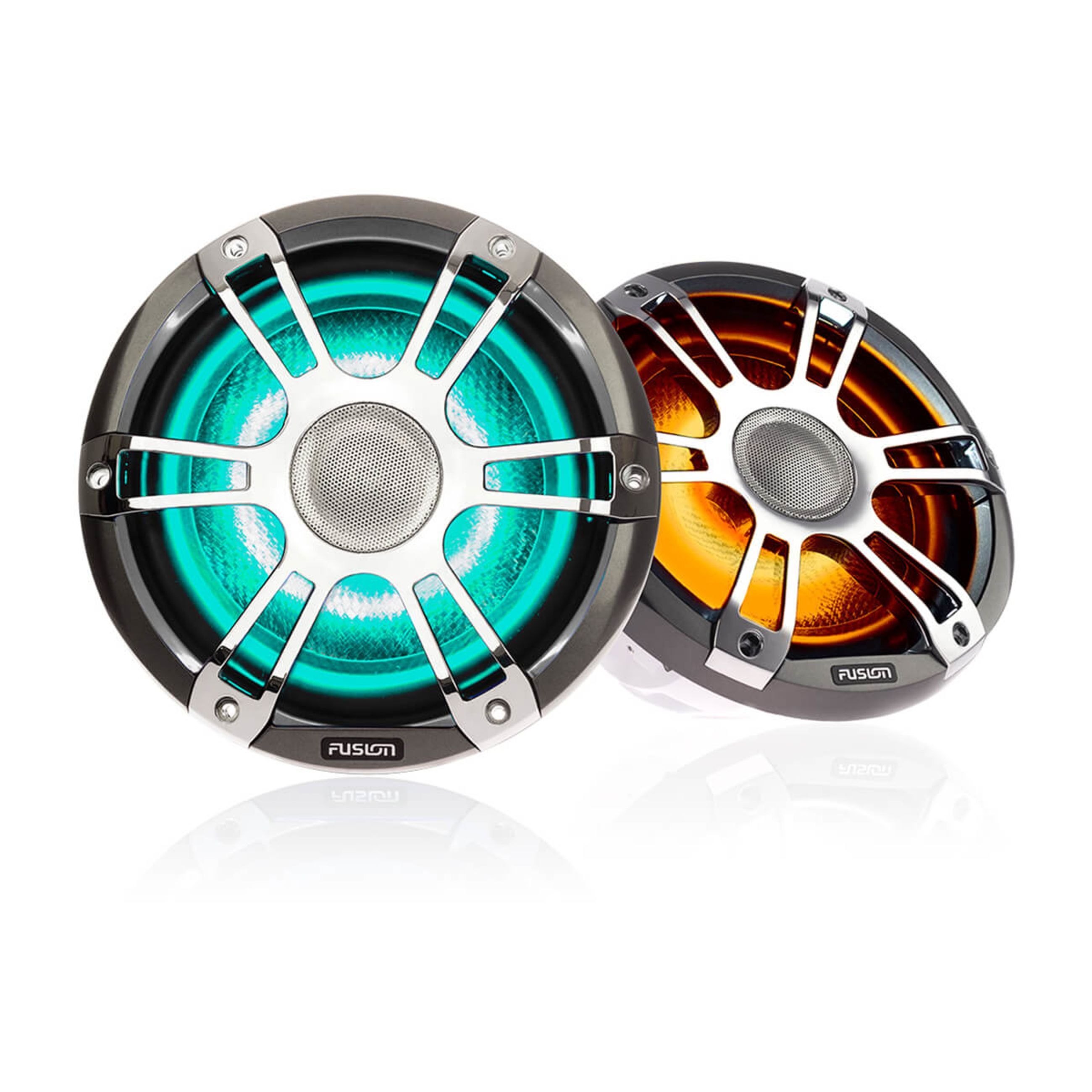 Fusion Signature Series 3 Marine Wake Tower Speakers – 7.7″ 280 Watt Coaxial Sports Chrome Marine Speakers (Pair) With Crgbw Led Lighting